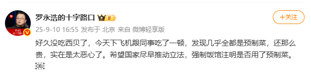 然而,2025年9月10日,罗永浩的一条微博,将西贝推上风口浪尖。